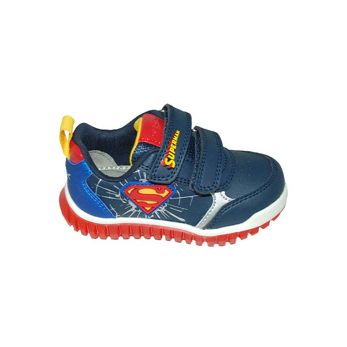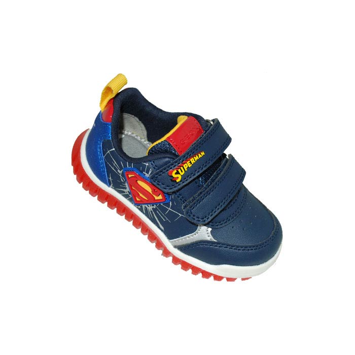 Αθλητικού τύπου μπλε μπλε ρουά Led, αυτοκόλλητα κουμπώματα, led φωτάκια στην σόλα με κουμπί On/off, σχέδιο superman, GEOX