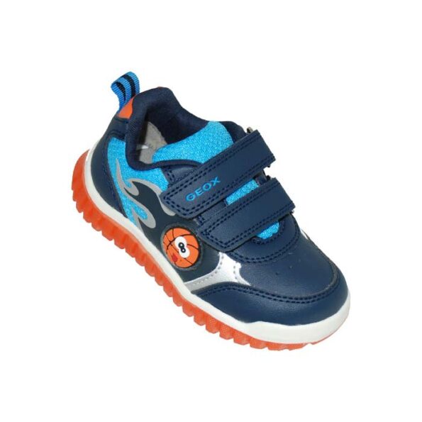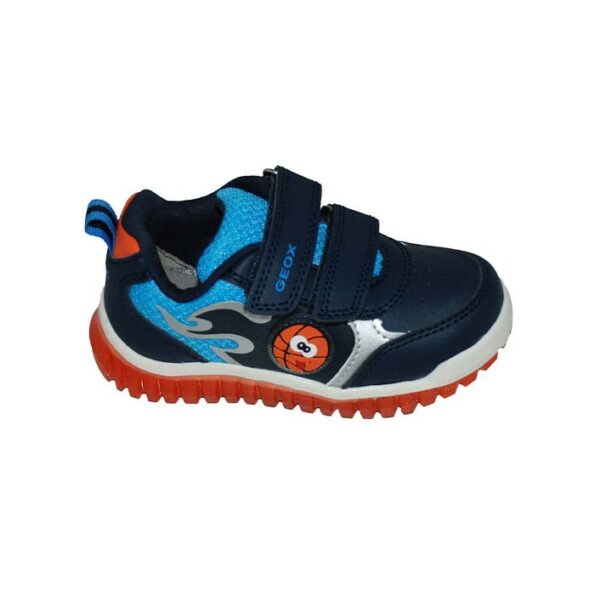 Αθλητικού τύπου Led μπλε πορτοκαλί, αυτοκόλλητα κουμπώματα, φωτάκια led στην σόλα, σχέδιο με μπάλα, GEOX