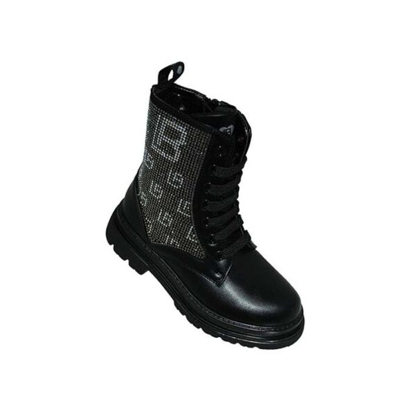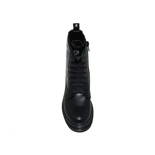 Αρβυλάκι μαύρο, δερμάτινος ανατομικός πάτος, φερμουάρ στο πλάι, δέσιμο με κορδόνια, σχέδιο με στρας, LAURA BIAGIOTTI