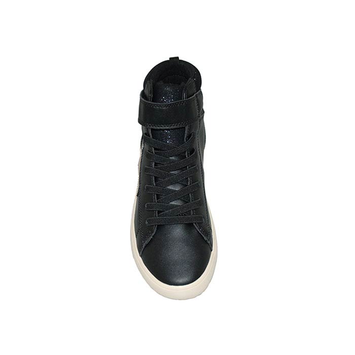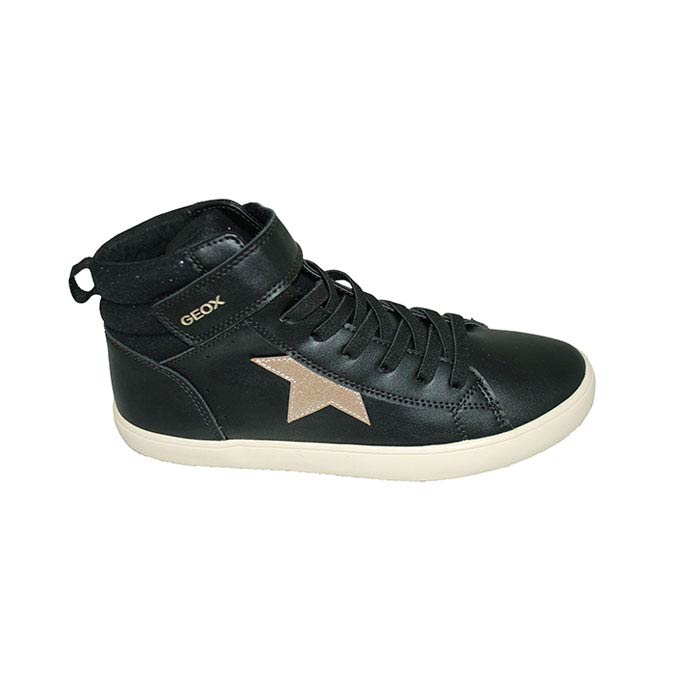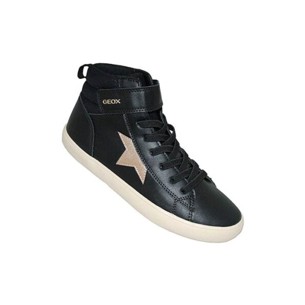Μποτάκι δερμάτινο μαύρο, αυτοκόλλητο κούμπωμα και δέσιμο με λάστιχα, σχέδιο με αστέρι, GEOX