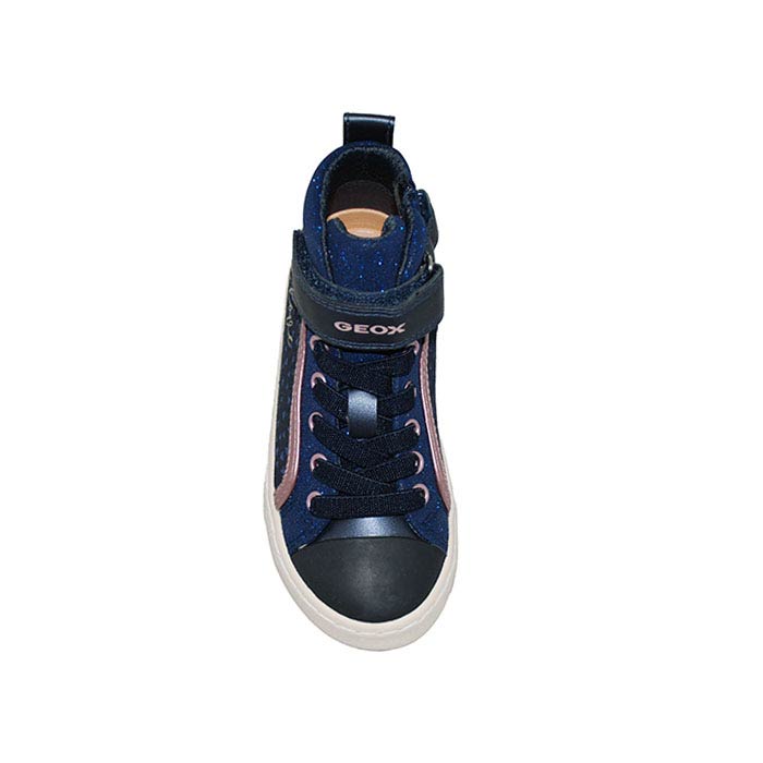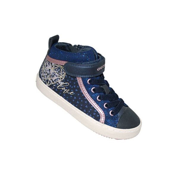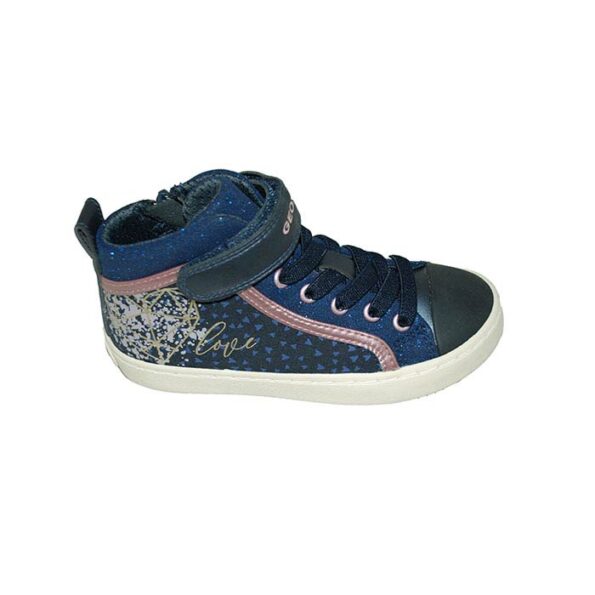 Μποτάκι δερμάτινο μπλε ροζ, δερμάτινος ανατομικός πάτος, αυτοκόλλητο κούμπωμα με φερμουάρ και δέσιμο με λάστιχα, σχέδιο με διαμάντι, GEOX