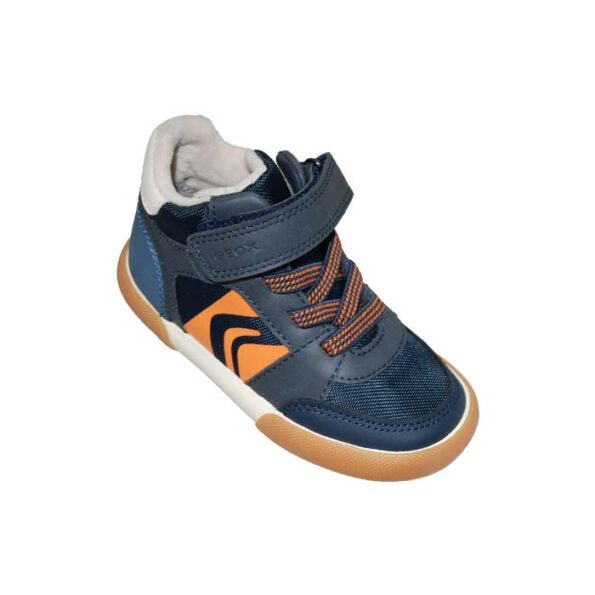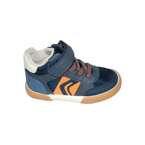 Μποτάκι δερμάτινο πρώτα βήματα μπλε πορτοκαλί, αυτοκόλλητο κούμπωμα και δέσιμο με λάστιχα, GEOX