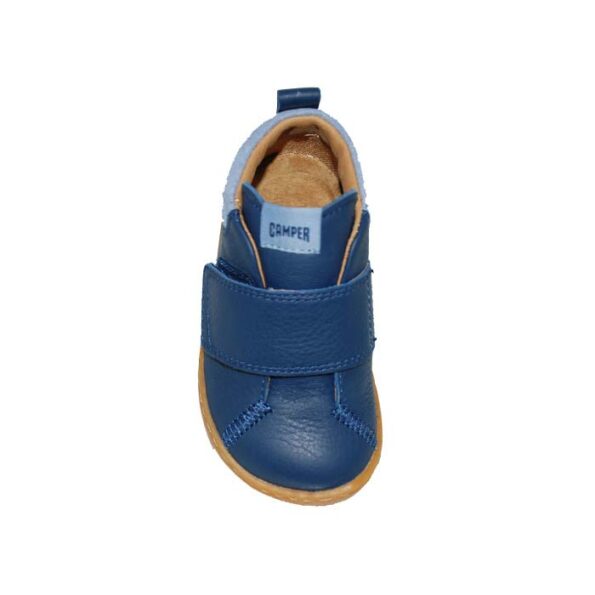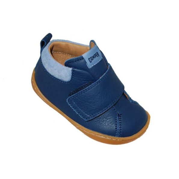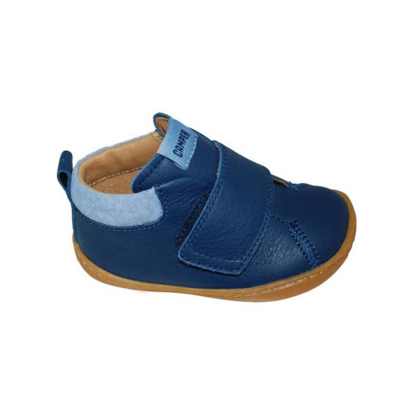 Μποτάκι δερμάτινο πρώτα βήματα μπλε, δερμάτινος ανατομικός πάτος, αυτοκόλλητο κούμπωμα, CAMPER