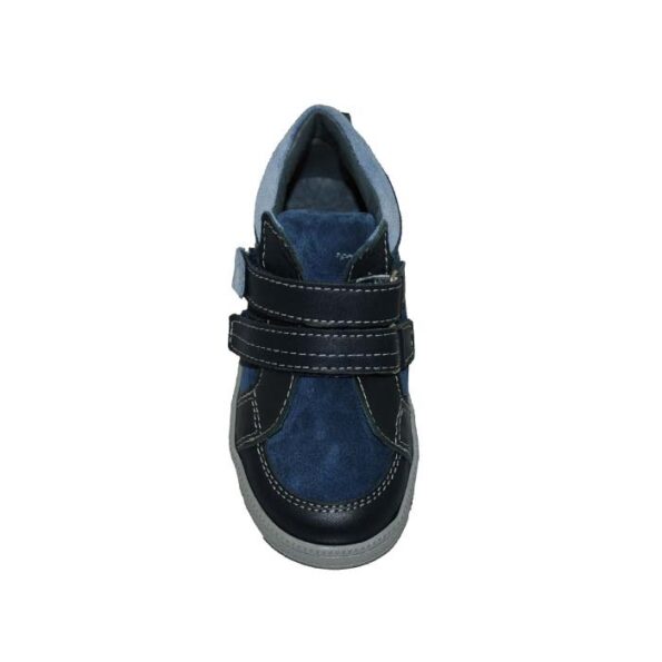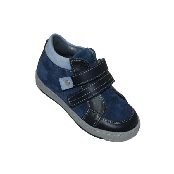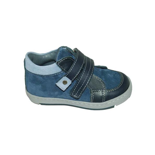 Μποτάκι δερμάτινο σαμουά πρώτα βήματα μπλε, δερμάτινος ανατομικός πάτος, αυτοκόλλητα κουμπώματα, ΜΟΥΓΕΡ