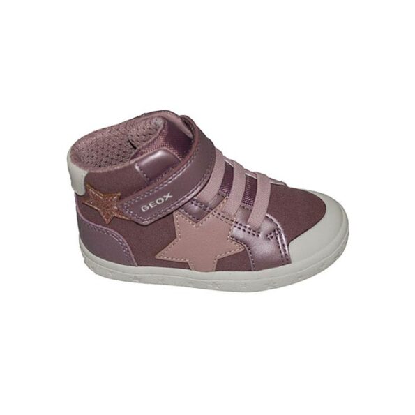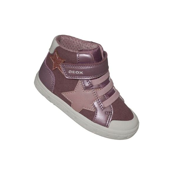 Μποτάκι δερμάτινο σαμουά πρώτα βήματα ροζ, δερμάτινος ανατομικός πάτος, αυτοκόλλητα κουμπώματα, σχέδιο με αστέρι, GEOX