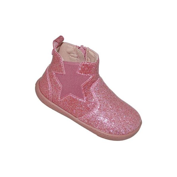 Μπότα χαμηλή λουστρίνι ροζ, δερμάτινος πάτος, φερμουάρ στο πλάι, σχέδιο με αστέρι, GARVALIN