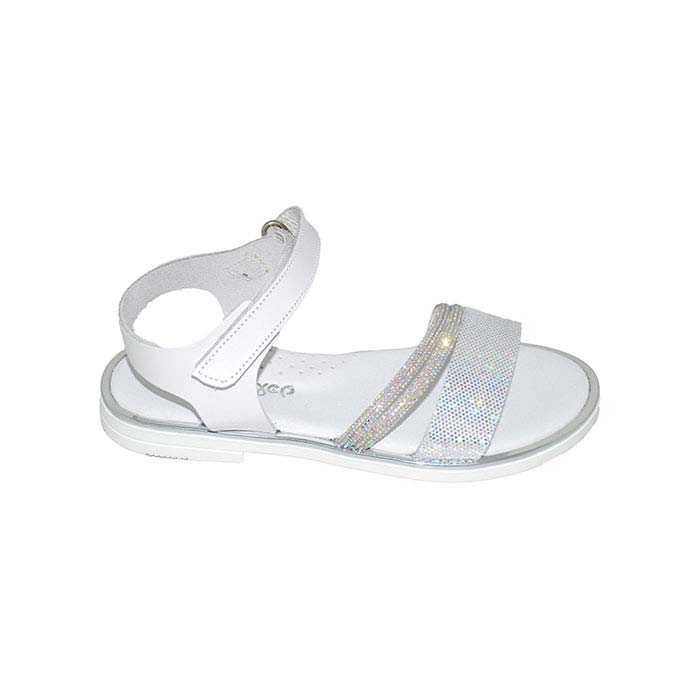 Sandal leather white silver