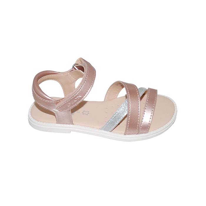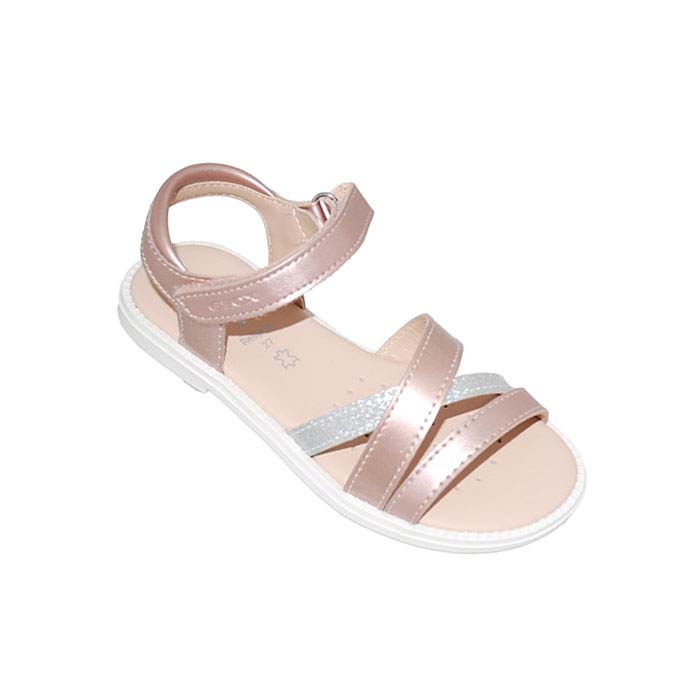 Πέδιλο δερμάτινο ροζ, δερμάτινος πάτος, αυτοκόλλητα κουμπώματα, σχέδιο με λουριά, GEOX