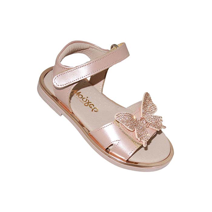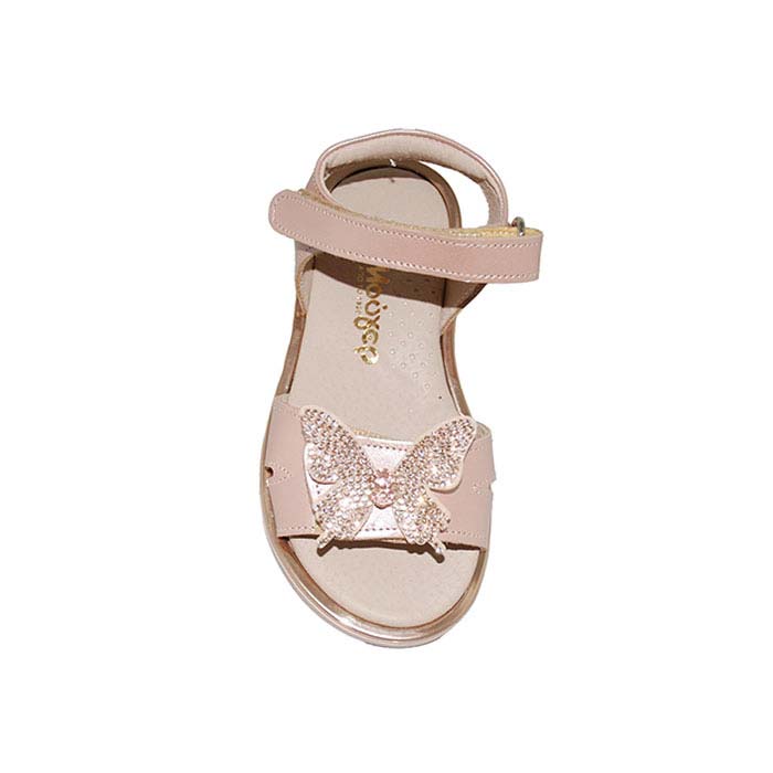 Πέδιλο δερμάτινο ροζ, δερμάτινος ανατομικός πάτος, αυτοκόλλητα κουμπώματα, σχέδιο με πεταλούδα με στρας, ΜΟΥΓΕΡ