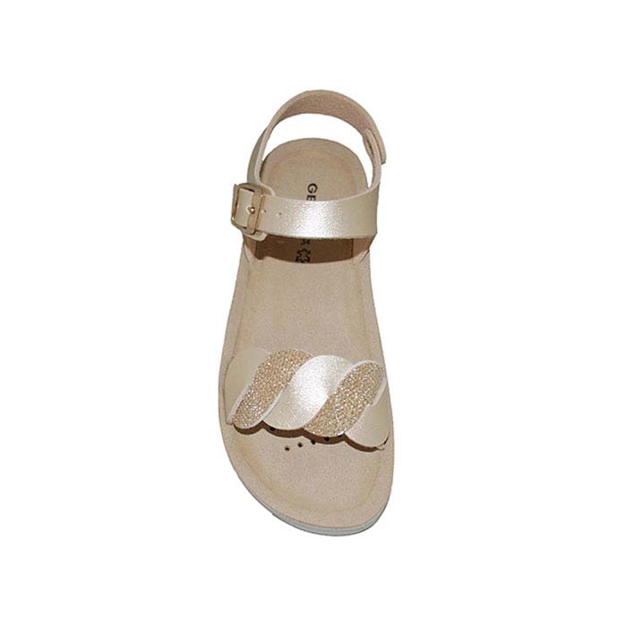 Πέδιλο δερμάτινο χρυσό, δερμάτινος πάτος, κλείσιμο με τοκά, σχέδιο με πλεξούδα, GEOX