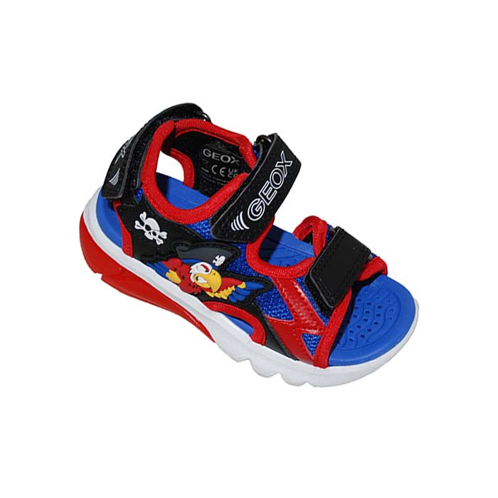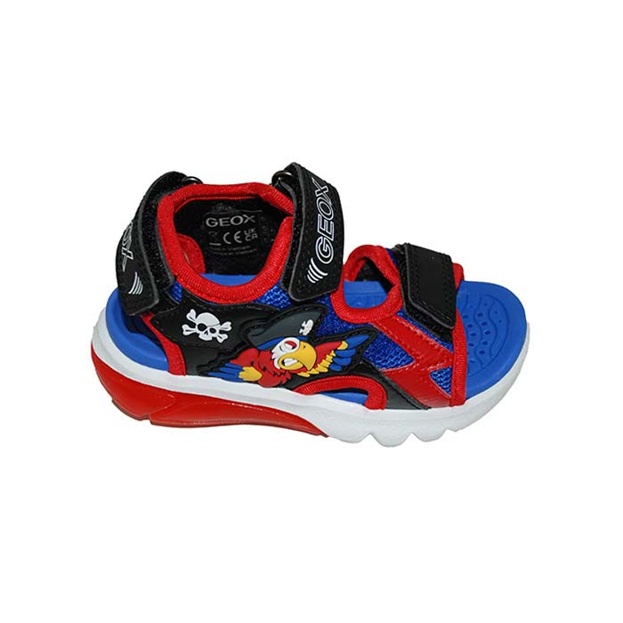 Πέδιλο μπλε ρουά κόκκινο, αυτοκόλλητα κουμπώματα, κουμπί on /of για τα led στην σόλα σε κάθε βήμα, σχέδιο με πειρατή, GEOX