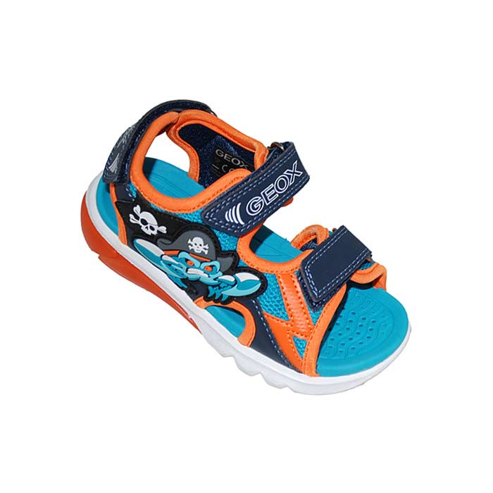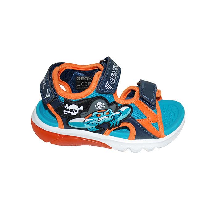 Πέδιλο πολύχρωμο, αυτοκόλλητα κουμπώματα, σχέδιο με πειρατή καβούρι, κουμπι on/of για τα led στην σόλα, GEOX