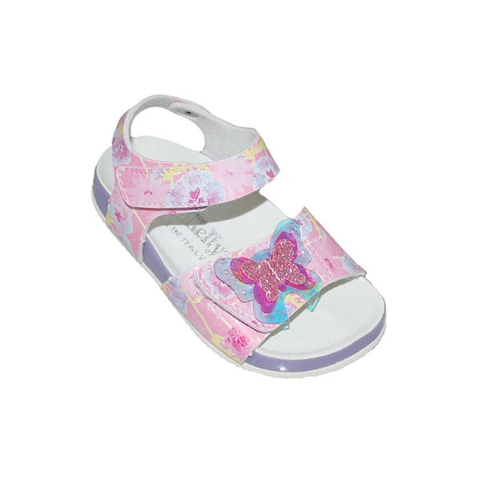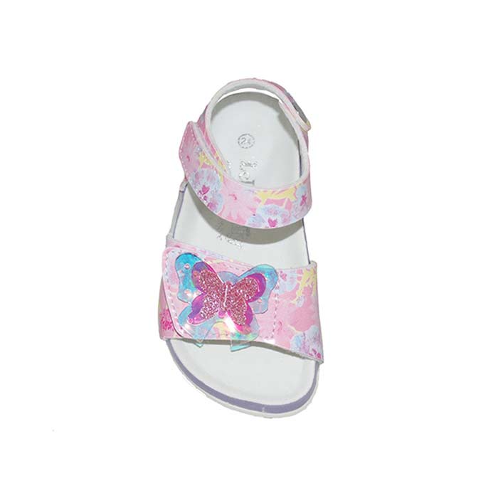 Πέδιλο φελός ροζ, αυτοκόλλητα κουμπώματα, δερμάτινος ανατομικός πάτος, σχέδιο με πεταλούδα, LELLI KELLY