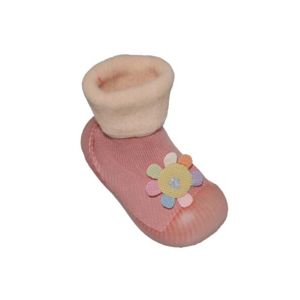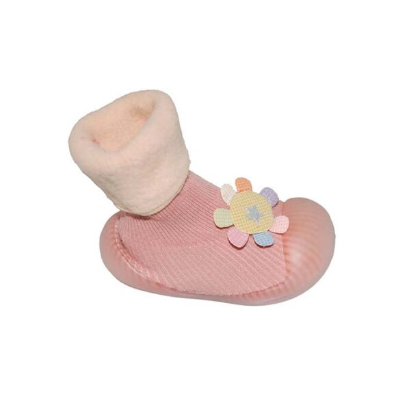 Παντόφλα κάλτσα ροζ, σχέδιο με λουλούδι, CHILDRENLAND