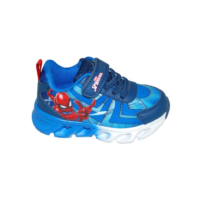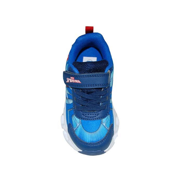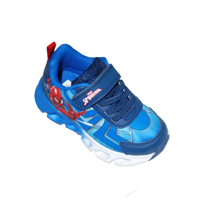 Αθλητικού τύπου led μπλε μπλε ρουά, αυτοκόλλητο κούμπωμα και λάστιχα, κουμπί on/of για το led στην σόλα, σχέδιο spiderman, MODUM