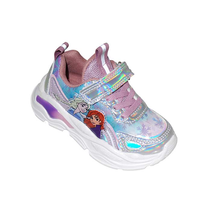 Αθλητικού τύπου ασημί λιλά, αυτοκόλλητο κούμπωμα και λάστιχα, led στην σόλα, σχέδιο Frozen, Disney