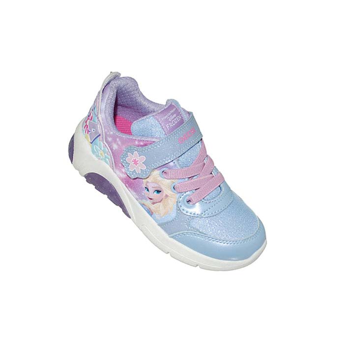Αθλητικού τύπου γαλάζιο ροζ, αυτοκόλλητο κούμπωμα και λάστιχο, κουμπί on/off για τα φωτάκια στην σόλα, σχέδιο με την ELSA, GEOX