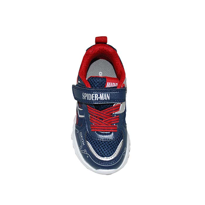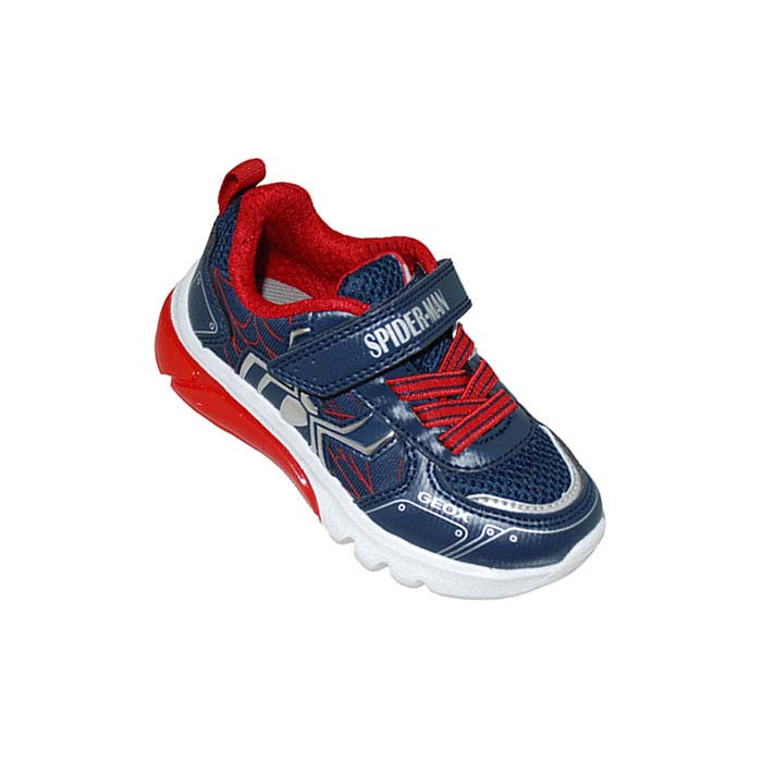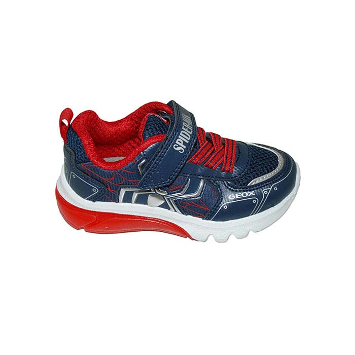 Αθλητικού τύπου μπλε κόκκινο, αυτοκόλλητο κούμπωμα και λάστιχο, κουμπί on/off για τα φωτάκια στην σόλα, σχέδιο SPIDERMAN, GEOX