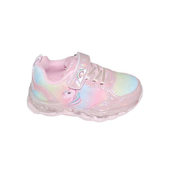 Αθλητικού τύπου ροζ, αυτοκόλλητο κούμπωμα και λάστιχα, led στην σόλα, σχέδιο με μονόκερο, Disney
