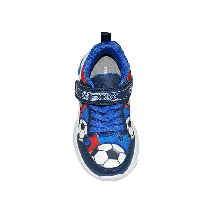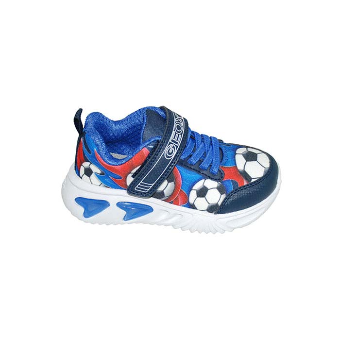 Αθλητικού τύπου led μπλε μπλε ρουά, αυτοκόλλητο κούμπωμα και λάστιχα, κουμπί on/of για το led στην σόλα, σχέδιο με μπάλες, GEOX
