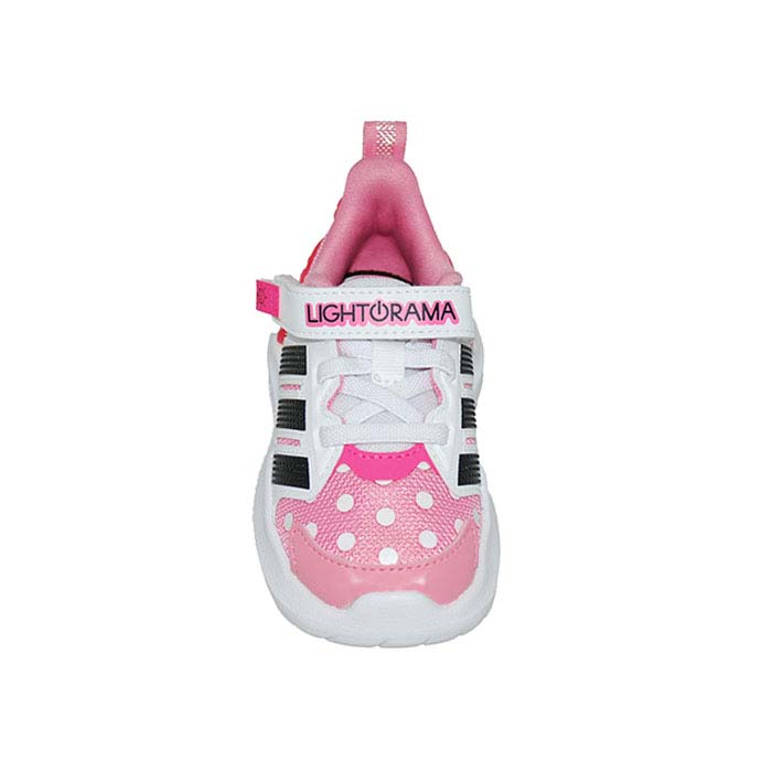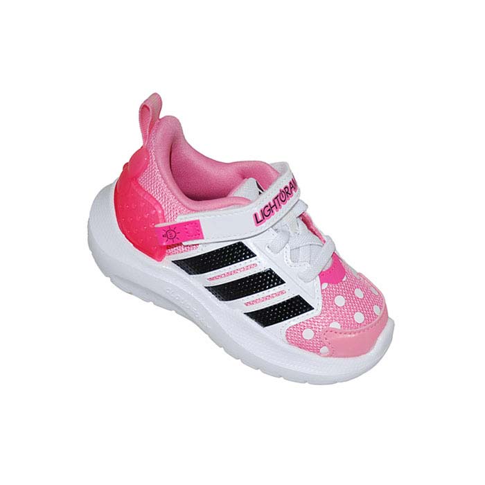 Αθλητικό λευκό ροζ, αυτοκόλλητο κούμπωμα και λάστιχα, σχέδιο με πουά και led στην φτέρνα με κουμπί on/of, ADIDAS