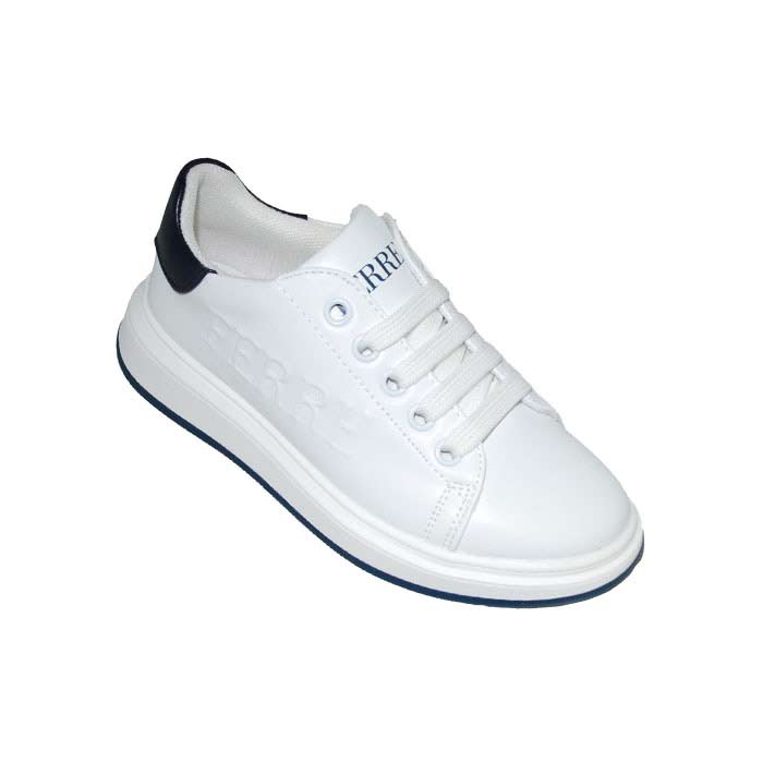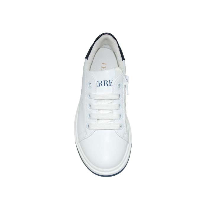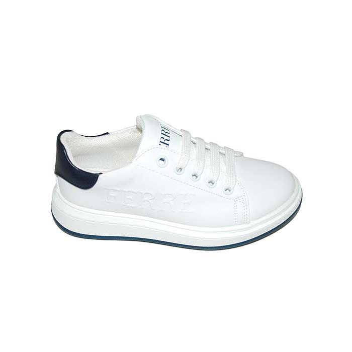 Αθλητικό life style λευκό, δερμάτινος ανατομικός πάτος, αυτοκόλλητο κούμπωμα φερμουάρ στο πλάι και δέσιμο με κορδόνια, σχέδιο με στρας, FERRE