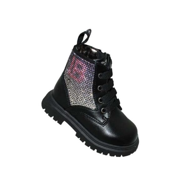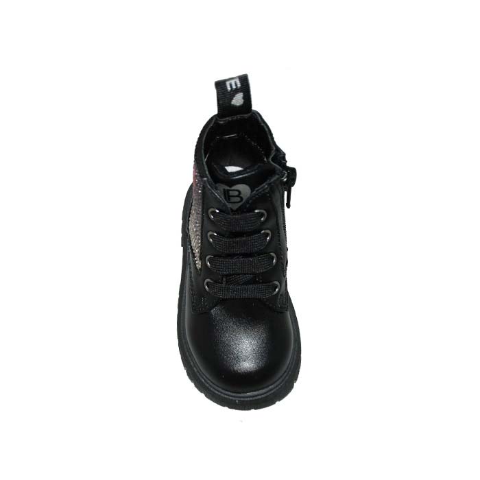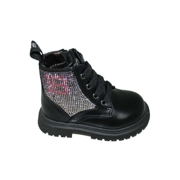 Αρβυλάκι μαύρο, δερμάτινος ανατομικός πάτος, φερμουάρ στο πλάι, δέσιμο με κορδόνια, σχέδιο με στρας, LAURA BIAGIOTTI