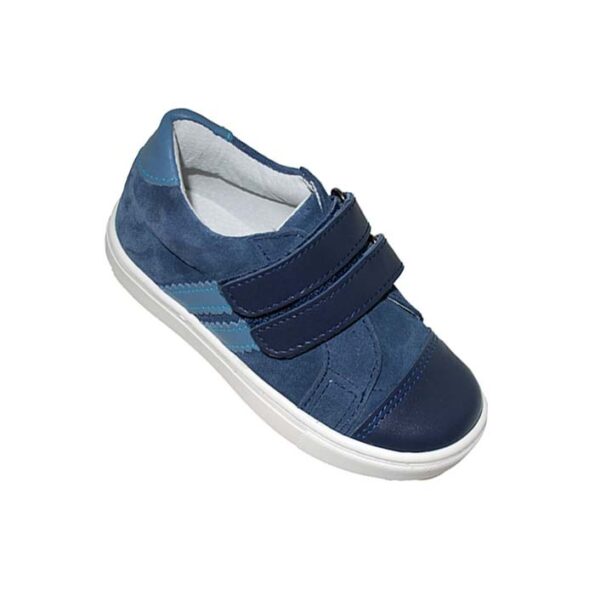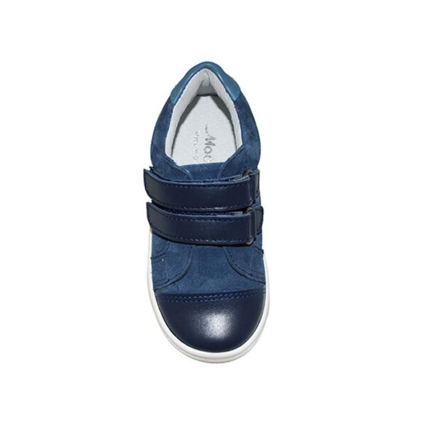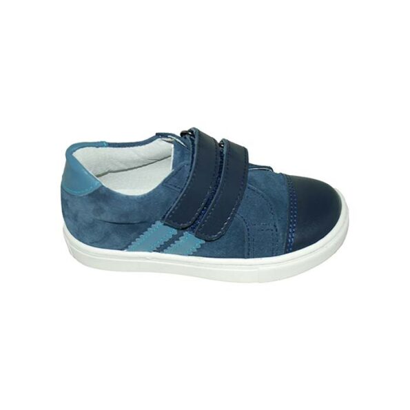 Κλειστό δερμάτινο σαμουά μπλε, δερμάτινος ανατομικός πάτος, αυτοκόλλητα κουμπώματα, ΜΟΥΓΕΡ