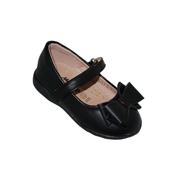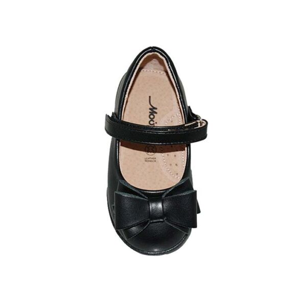 Μπαρέτα δερμάτινη μαύρη, δερμάτινος ανατομικός πάτος, αυτοκόλλητο κούμπωμα, σχέδιο με φιογκάκι, ΜΟΥΓΕΡ