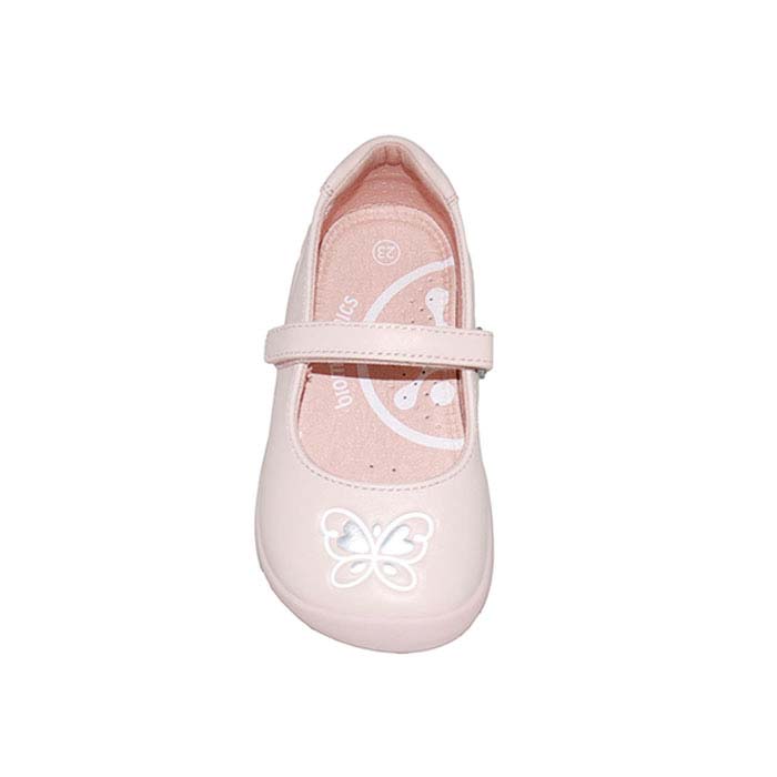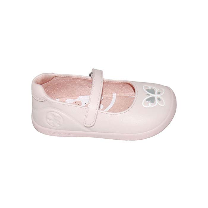 Μπαρέτα δερμάτινη ροζ, ανατομικός δερμάτινος πάτος, αυτοκόλλητο κούμπωμα, σχέδιο πεταλούδα και καρδιές, BIOMECANICS
