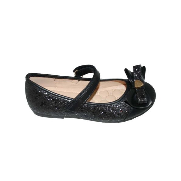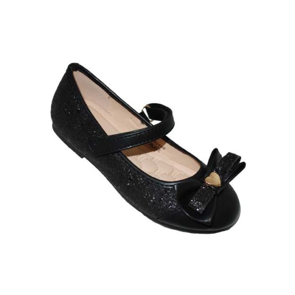 Μπαρέτα μαύρη, δερμάτινος ανατομικός πάτος, αυτοκόλλητο κούμπωμα, σχέδιο γκλίτερ με φιογκάκι και καρδούλα, ΤΟΥΙΤΙ