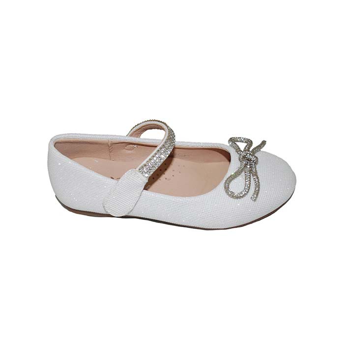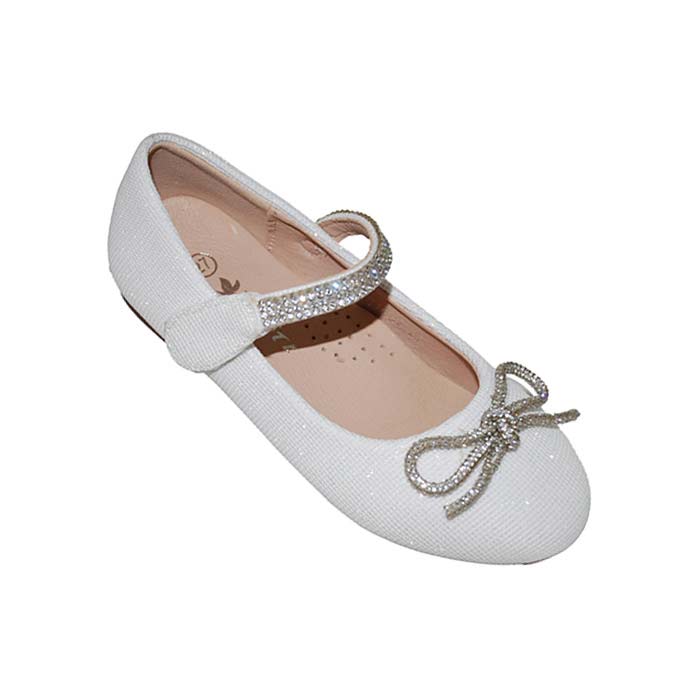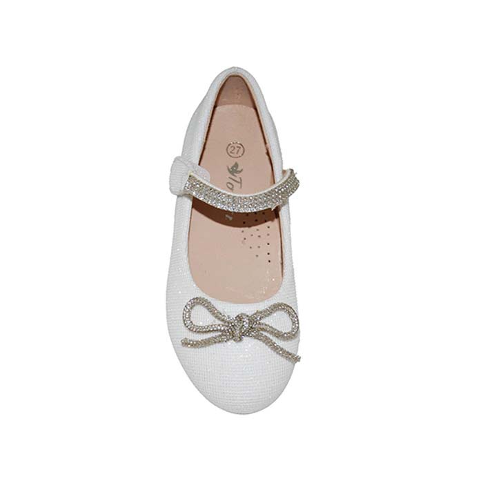 Μπαρέτα υφασμάτινη λευκή, δερμάτινος ανατομικός πάτος, αυτοκόλλητο κούμπωμα με στρας και σχέδιο με στρας, ΤΟΥΙΤΙ