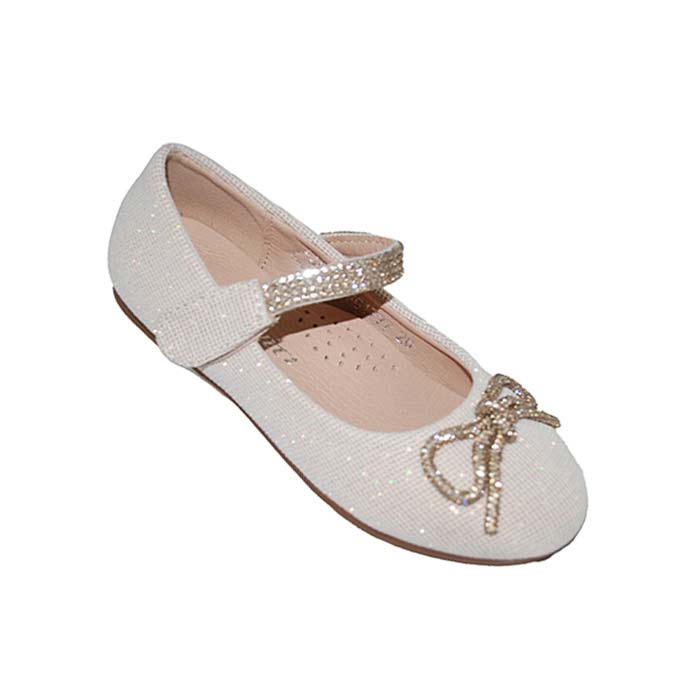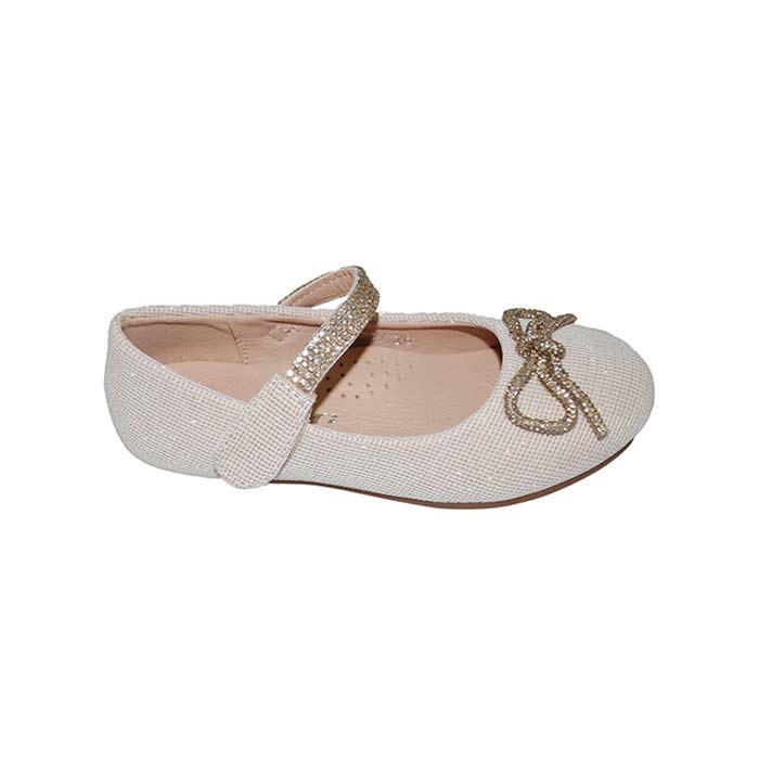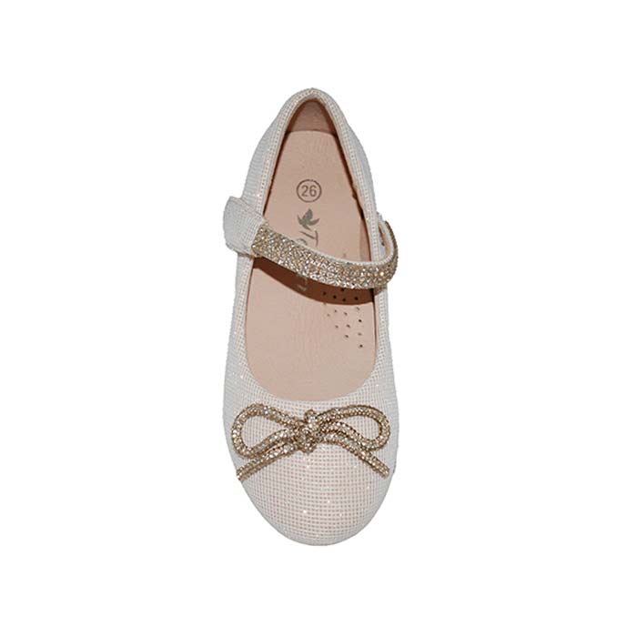 Μπαρέτα υφασμάτινη nude, δερμάτινος ανατομικός πάτος, αυτοκόλλητο κούμπωμα με στρας και σχέδιο με στρας, ΤΟΥΙΤΙ