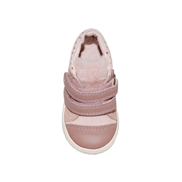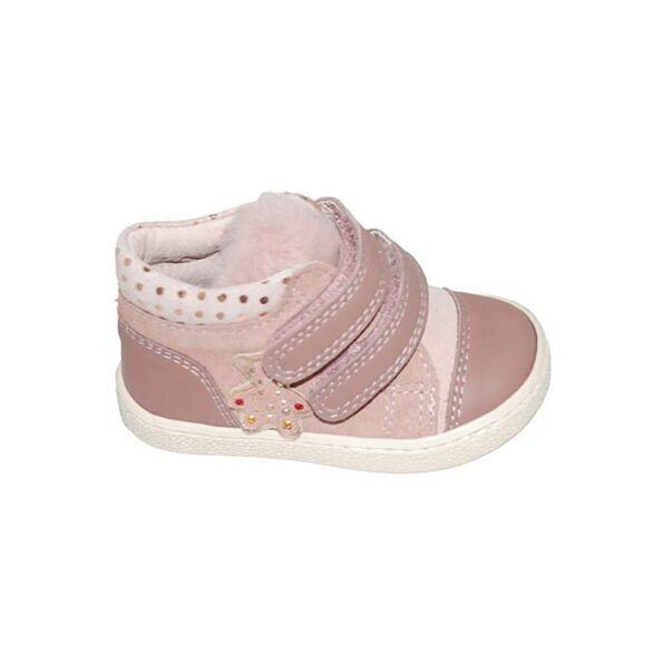 Μποτάκι δερμάτινο σαμουά πρώτα βήματα ροζ, δερμάτινος ανατομικός πάτος, αυτοκόλλητα κουμπώματα, ΜΟΥΓΕΡ