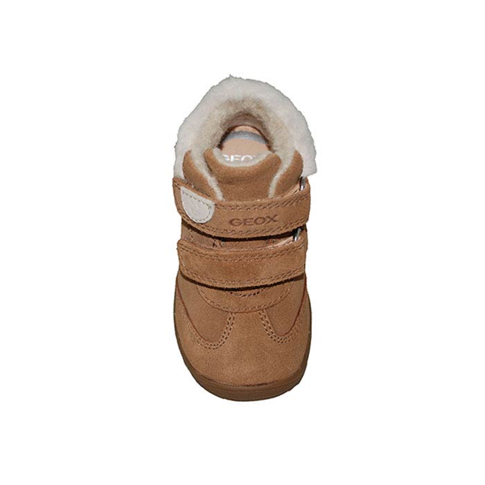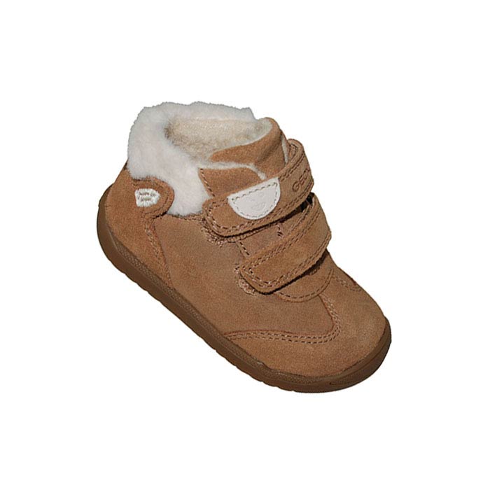 Μποτάκι δερμάτινο σαμουά πρώτα βήματα βακετί, δερμάτινος ανατομικός πάτος, αυτοκόλλητα κουμπώματα, σχέδιο γούνα με ζωάκι, GEOX