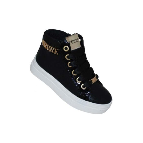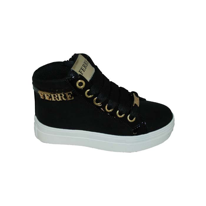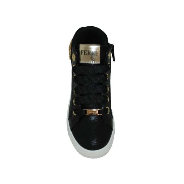 Μποτάκι μαύρο, δερμάτινος ανατομικός πάτος, φερμουάρ στο πλάι και δέσιμο με κορδόνια, FERRE
