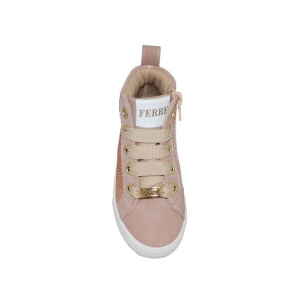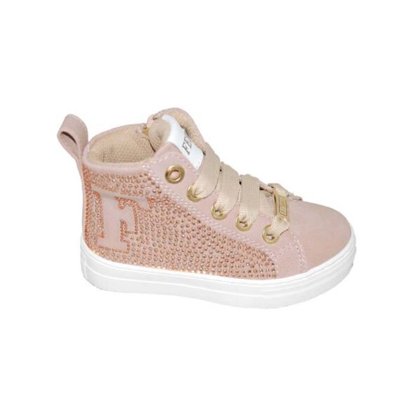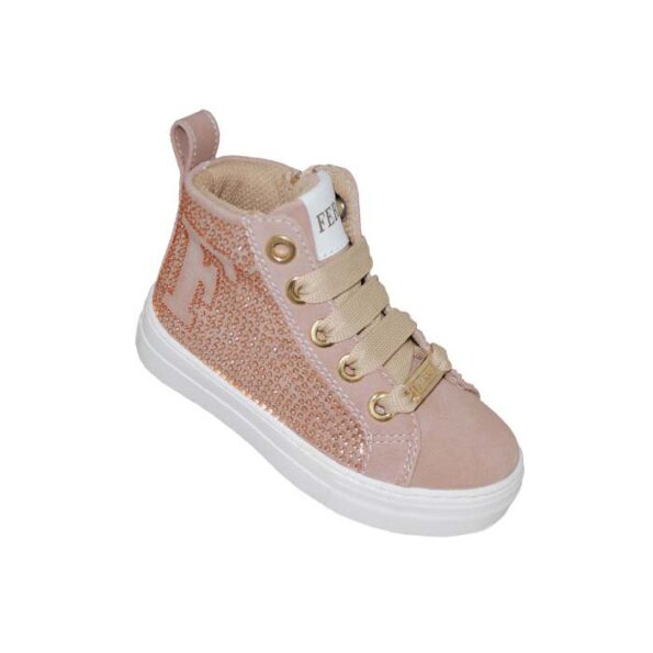 Μποτάκι ροζ, δερμάτινος ανατομικός πάτος, φερμουάρ στο πλάι και δέσιμο με κορδόνια, σχέδιο με στρας, FERRE