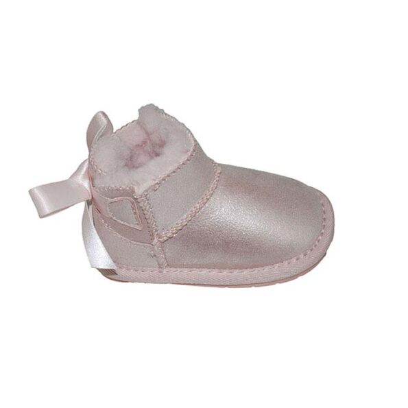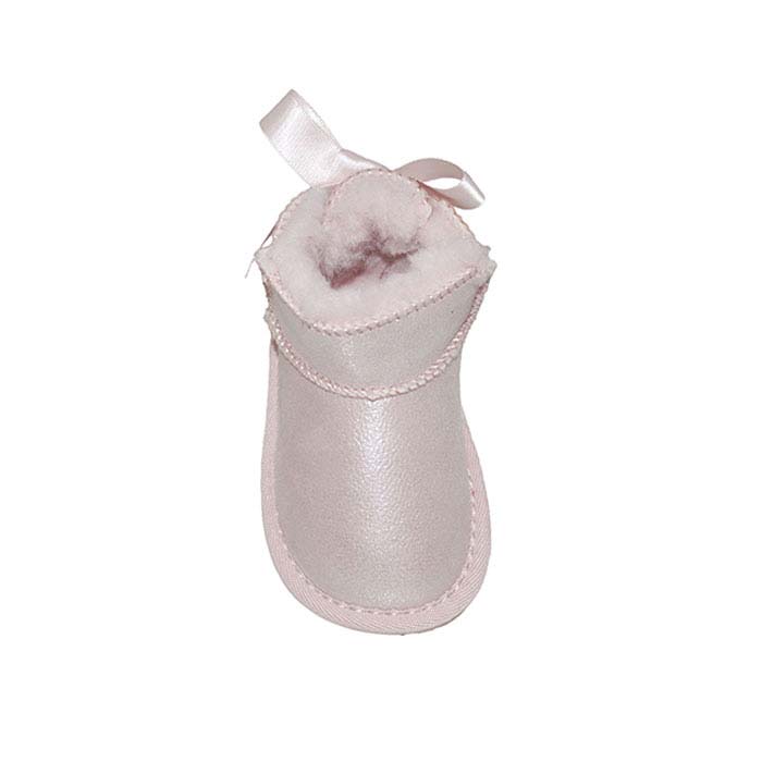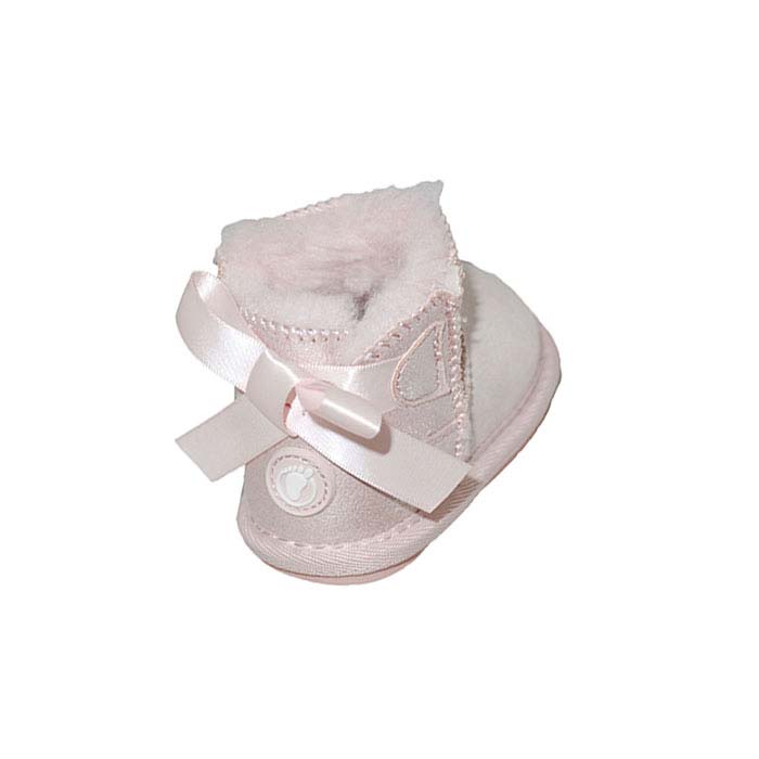 Μπότα χαμηλή με γούνα baby pink, σχέδιο με φιογκάκι πίσω, CONQUITOS