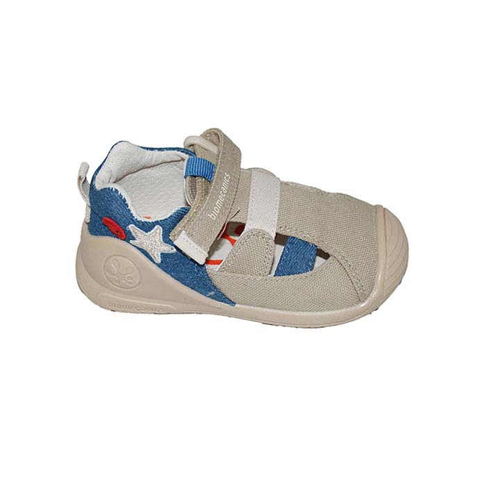 Πάνινο μπεζ τζην, δερμάτινος ανατομικός πάτος, αυτοκόλλητο κούμπωμα, σχέδιο με αστερία, BIOMECANICS