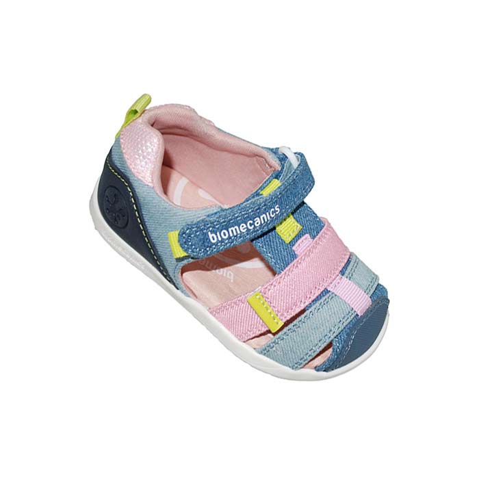 Πάνινο παπουτσοπέδιλο τζην ροζ, δερμάτινος ανατομικός πάτος, αυτοκόλλητο κούμπωμα, BIOMECANICS