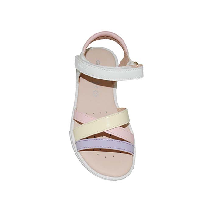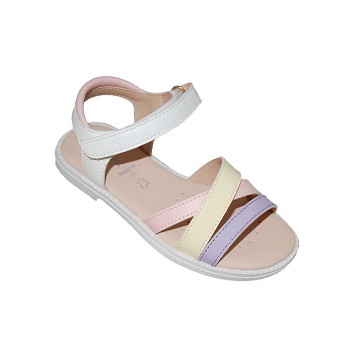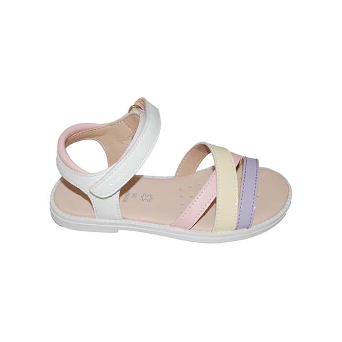 Πέδιλο δερμάτινο λευκό λιλά, δερμάτινος πάτος, αυτοκόλλητα κουμπώματα, σχέδιο με λουριά, GEOX