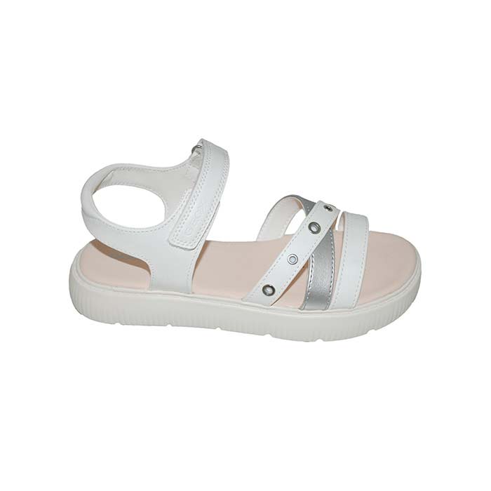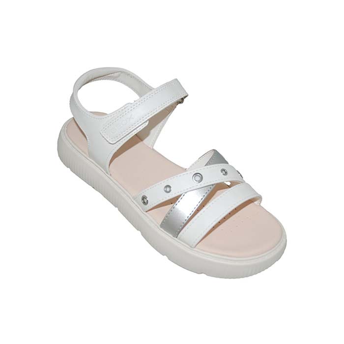 Πέδιλο δερμάτινο λευκό, δερμάτινος ανατομικός πάτος, αυτοκόλλητο κούμπωμα, σχέδιο με τρουκ, GEOX