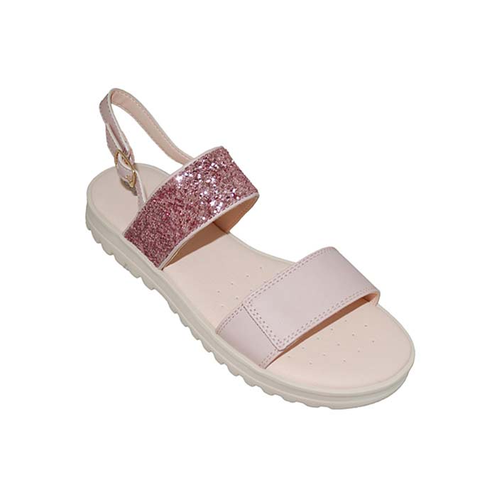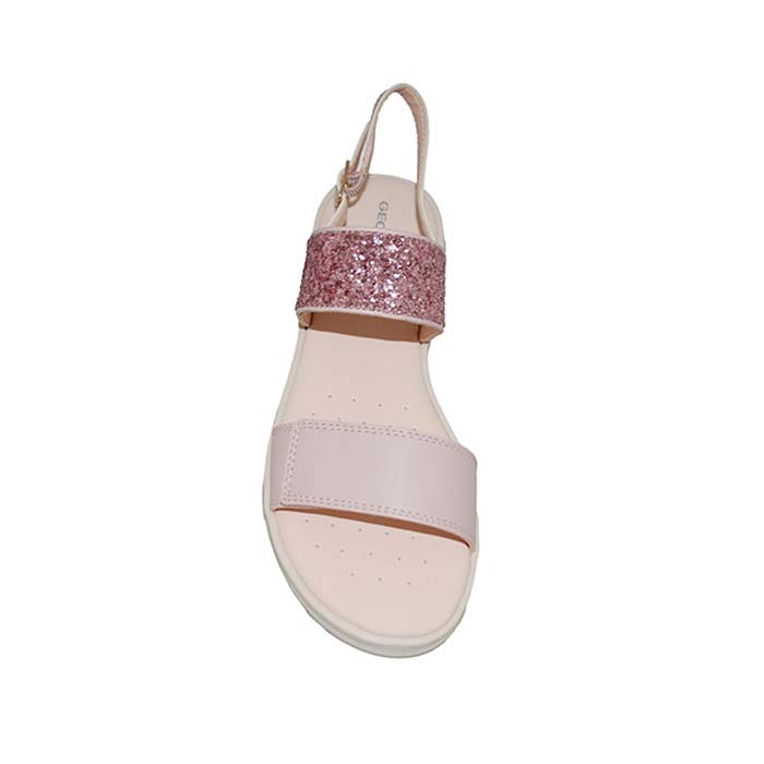 Πέδιλο δερμάτινο ροζ, δερμάτινος ανατομικός πάτος, αυτοκόλλητο κούμπωμα και τοκά, σχέδιο με γκλίτερ, GEOX