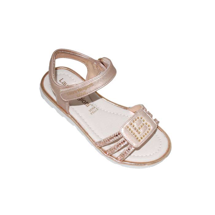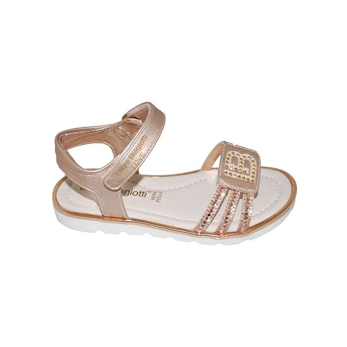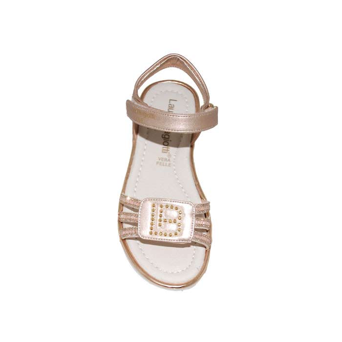 Πέδιλο δερμάτινο χρυσό, δερμάτινος ανατομικός πάτος, αυτοκόλλητα κουμπώματα, σχέδιο με στρας, LAURA BIAGIOTTI