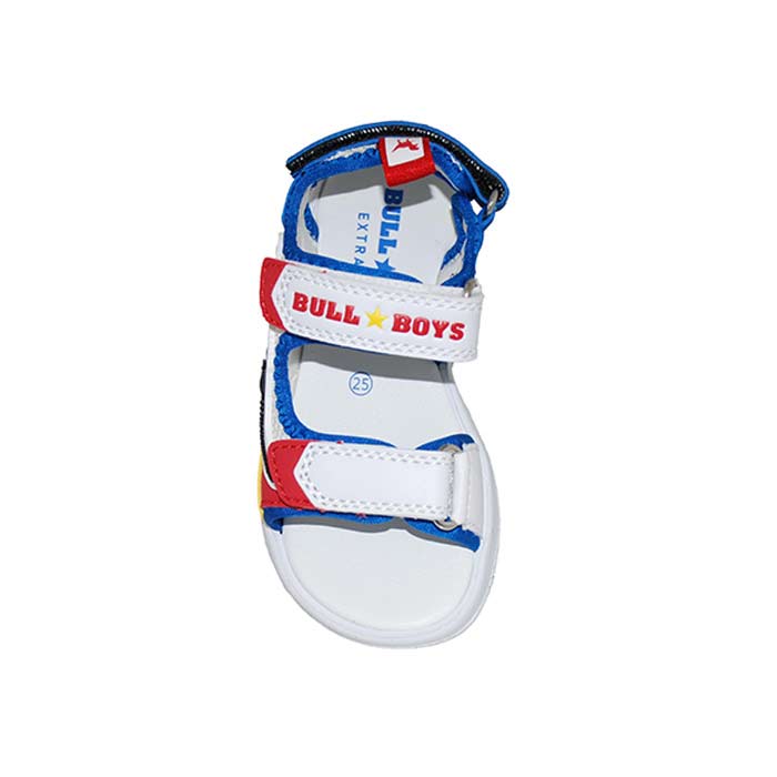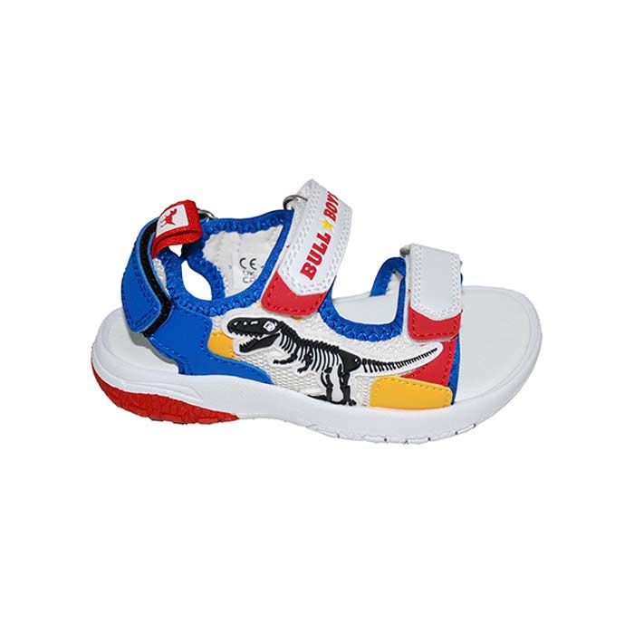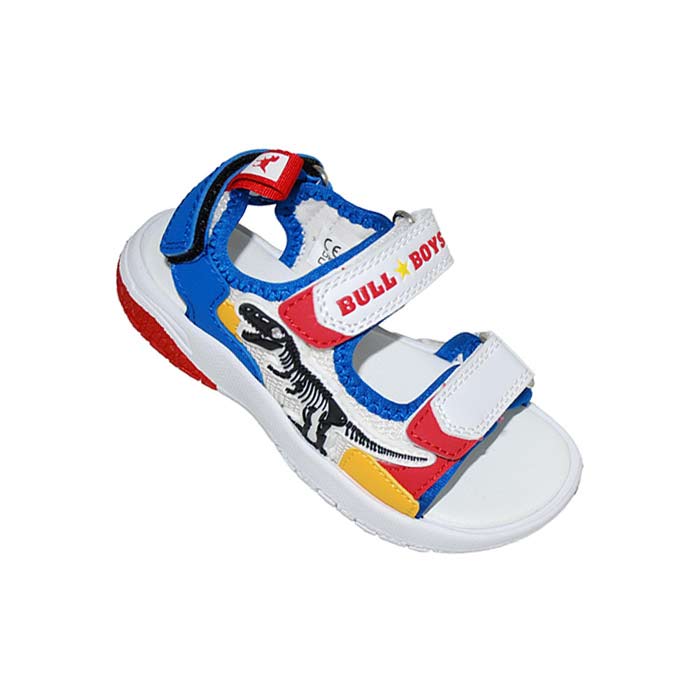 Πέδιλο λευκό μπλε ρουά, αυτοκόλλητα κουμπώματα, σχέδιο με δεινόσαυρο led στην σόλα και ήχος, BULL BOYS