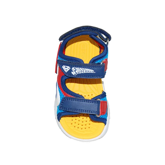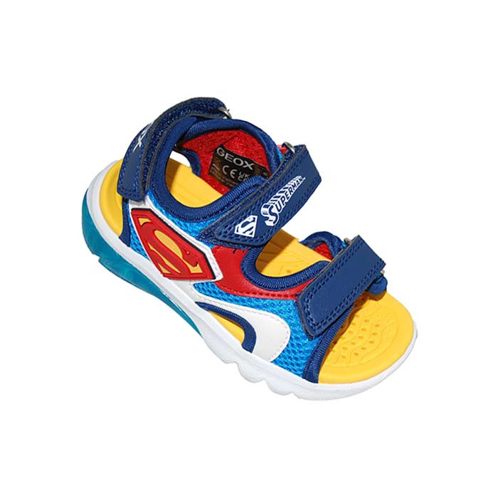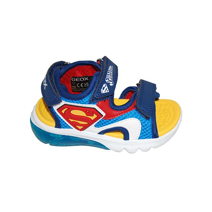 Πέδιλο μπλε ρουά κόκκινο, αυτοκόλλητα κουμπώματα, σχέδιο superman, κουμπι on/of για τα led στην σόλα, GEOX