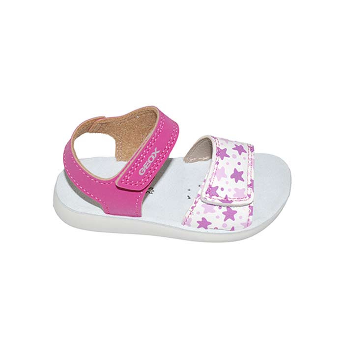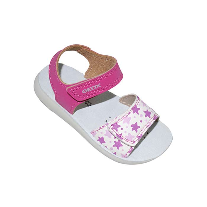 Πέδιλο ροζ, δερμάτινος ανατομικός πάτος, αυτοκόλλητα κουμπώματα, σόλα τεχνολογίας Respira που επιτρέπει στο πόδι να αναπνέει, σχέδιο με αστέρια, GEOX