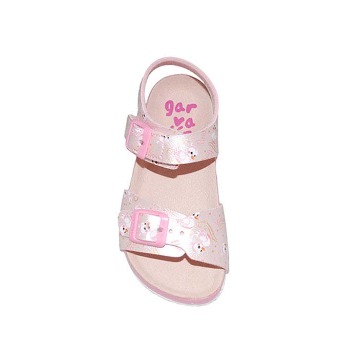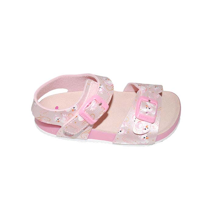 Πέδιλο φελλός ροζ, δερμάτινος πάτος, αυτοκόλλητο κούπωμα, σχέδιο με πουλάκι, GARVALIN