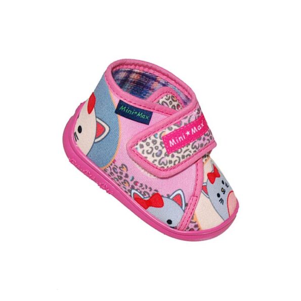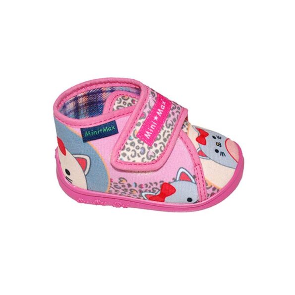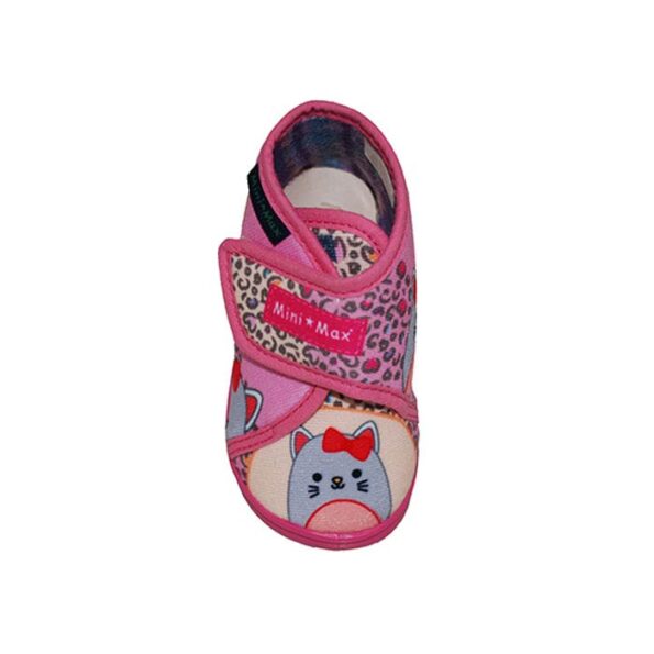 Παντόφλα ροζ, δερμάτινος ανατομικός πάτος, αυτοκόλλητο κούμπωμα, σχέδιο με ζωάκι, MINIMAX