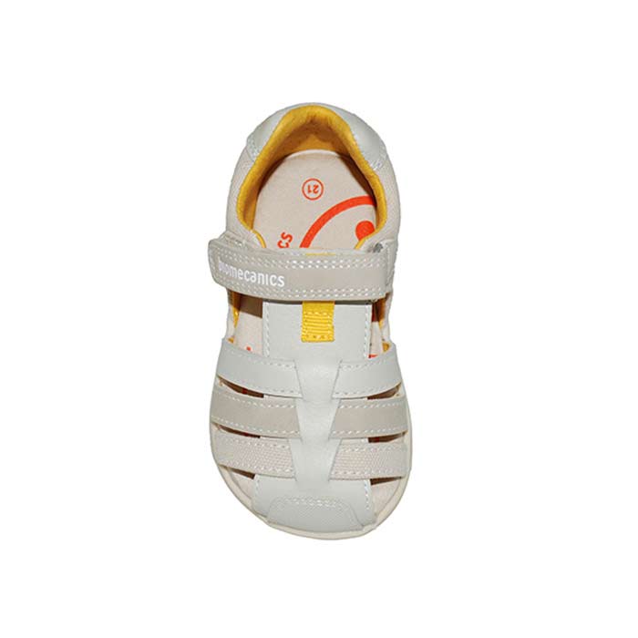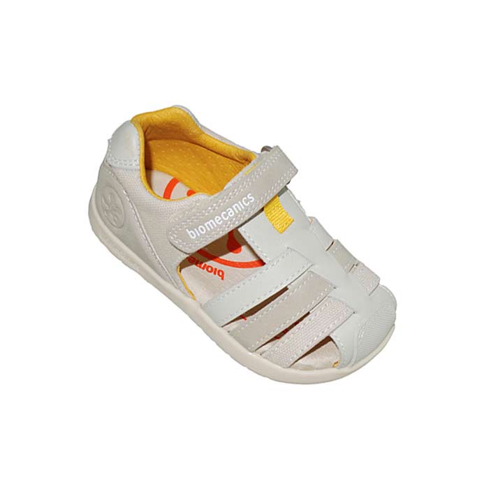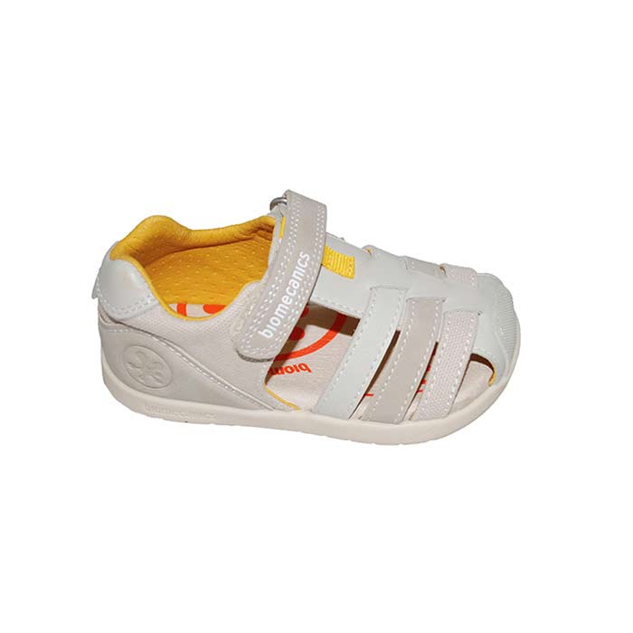 Παπουτσοπέδιλο δερμάτινος μπεζ, δερμάτινος ανατομικός πάτος, αυτοκόλλητο κούμπωμα, BIOMECANICS